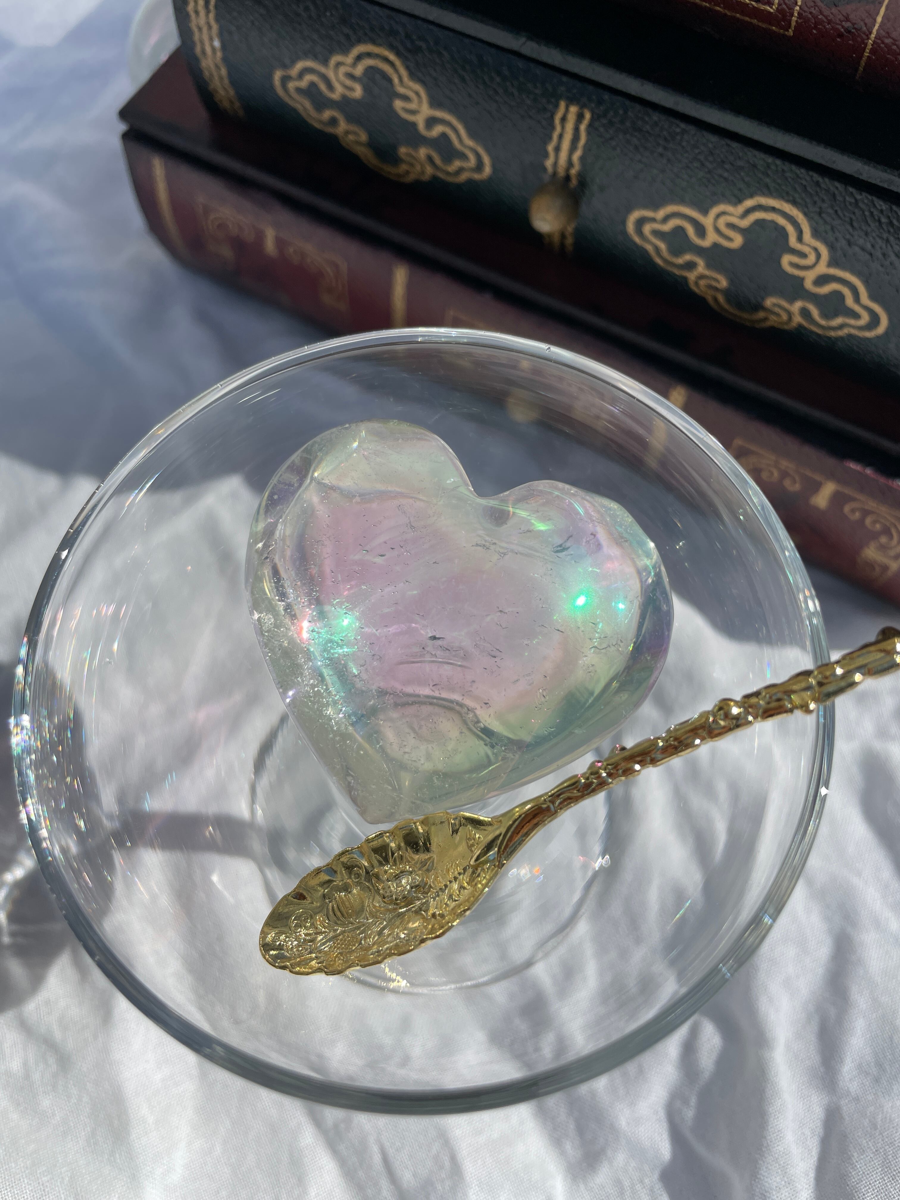 *オーラクリスタルとは透明度の高い水晶に、真空状態で高温の金属を人工的に蒸着させたモノの事を指します。