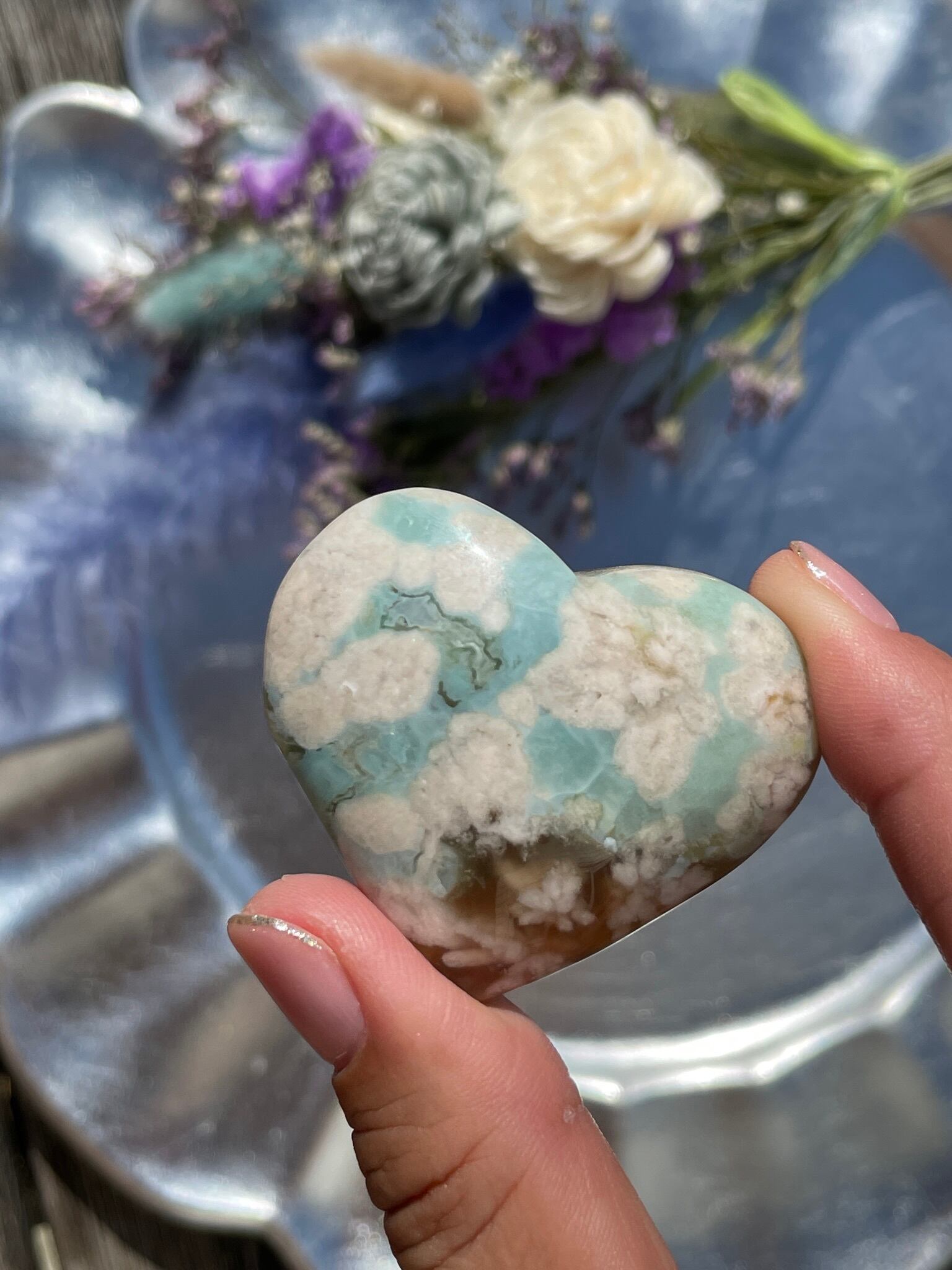 Green flower agate heart♡