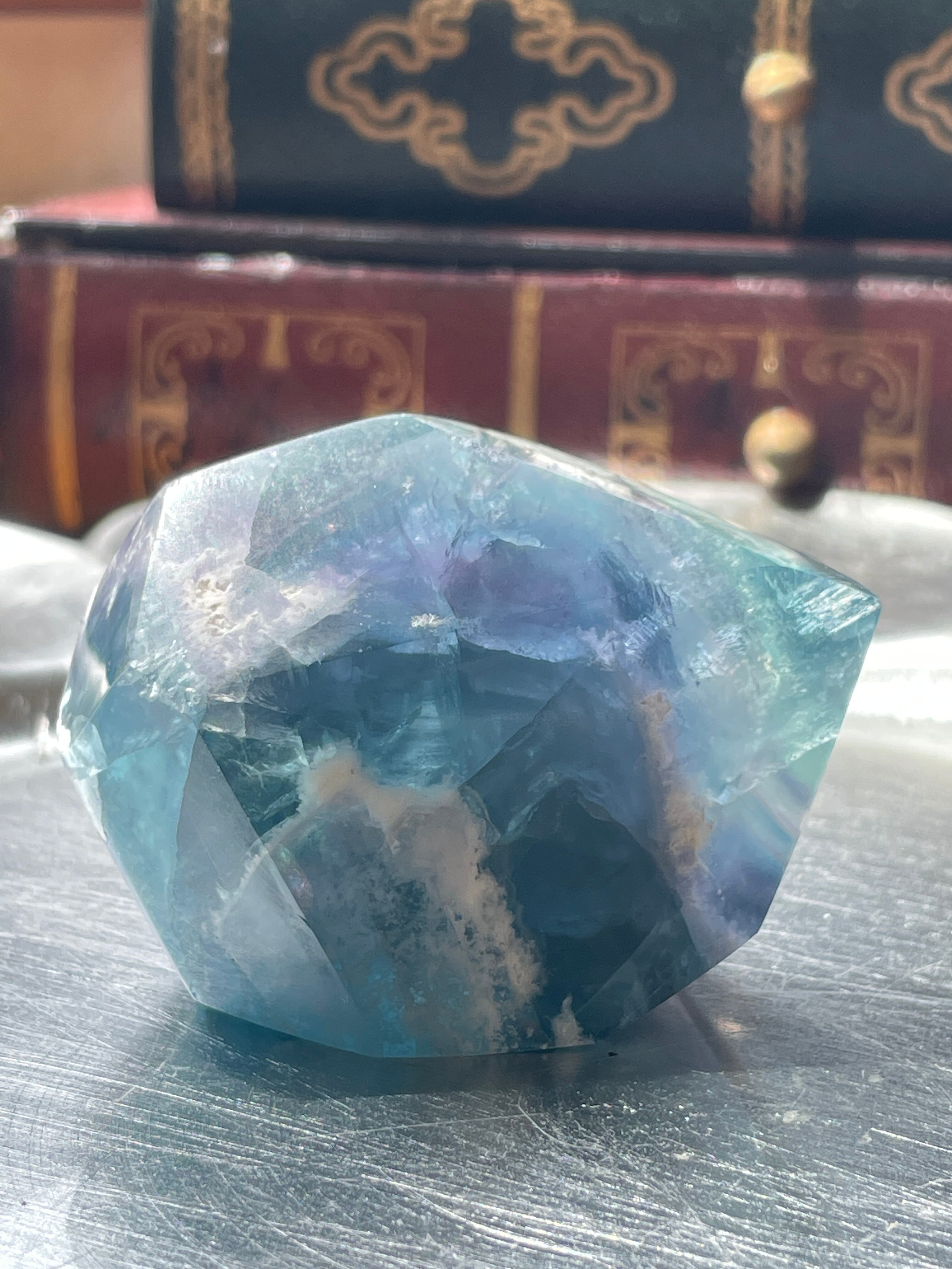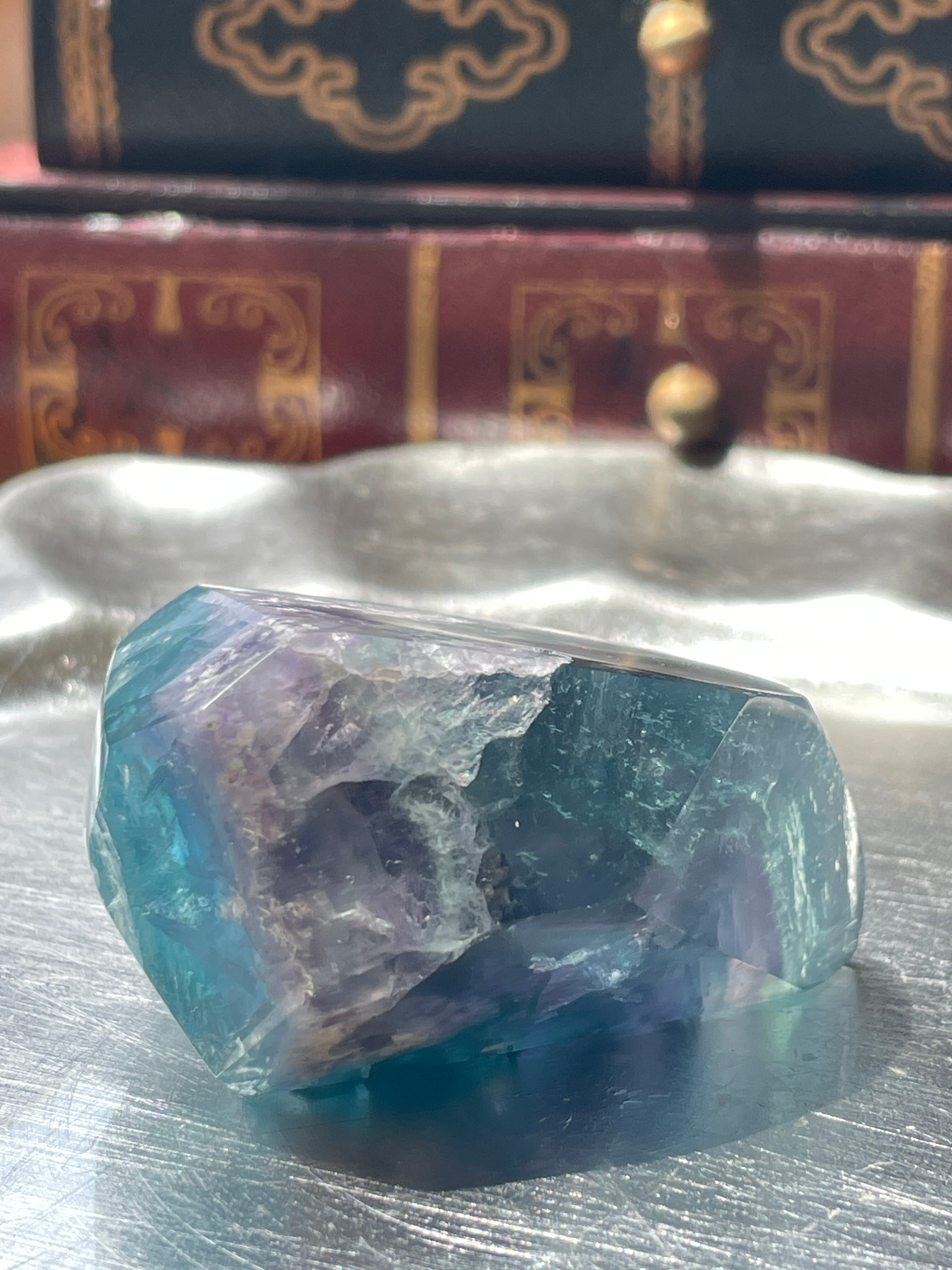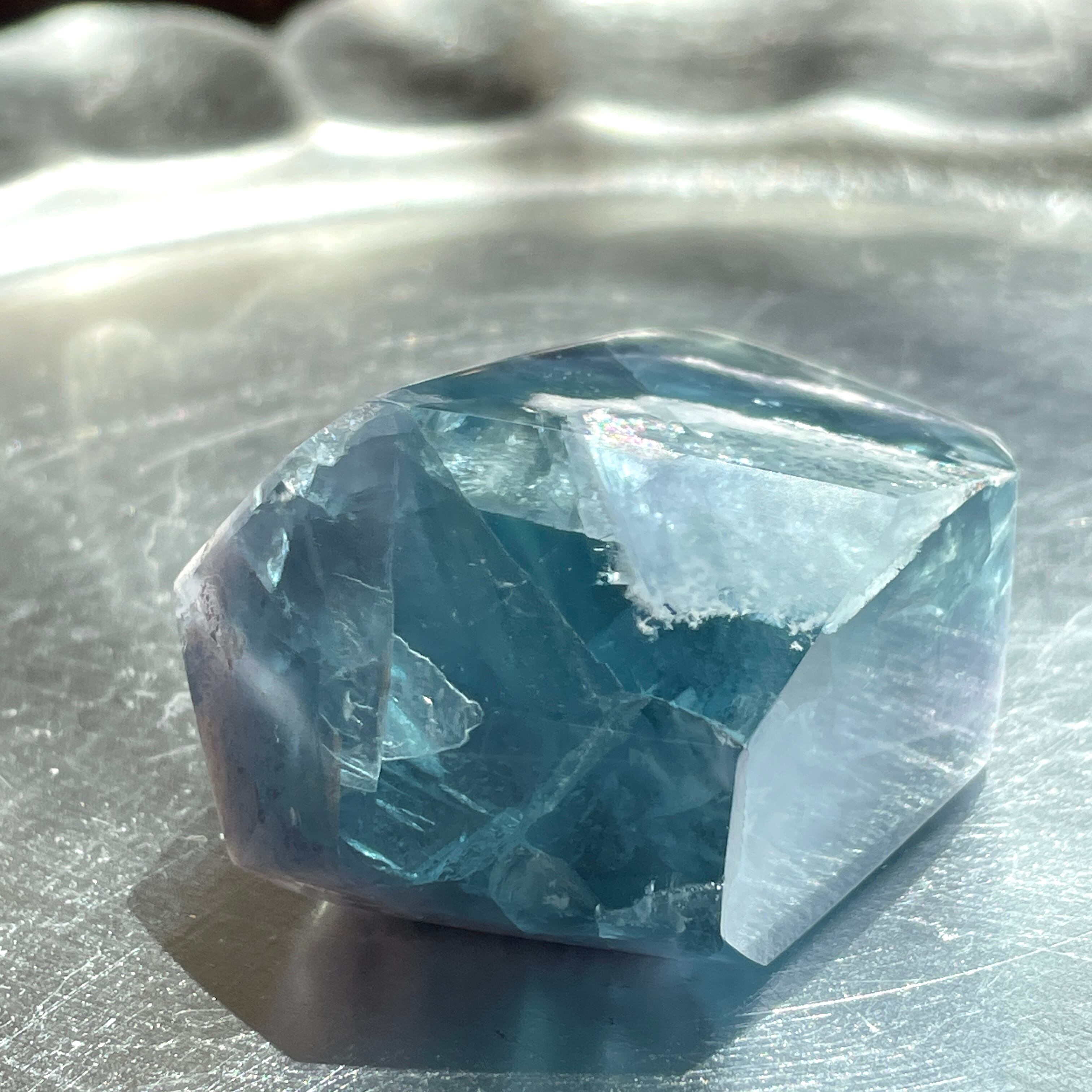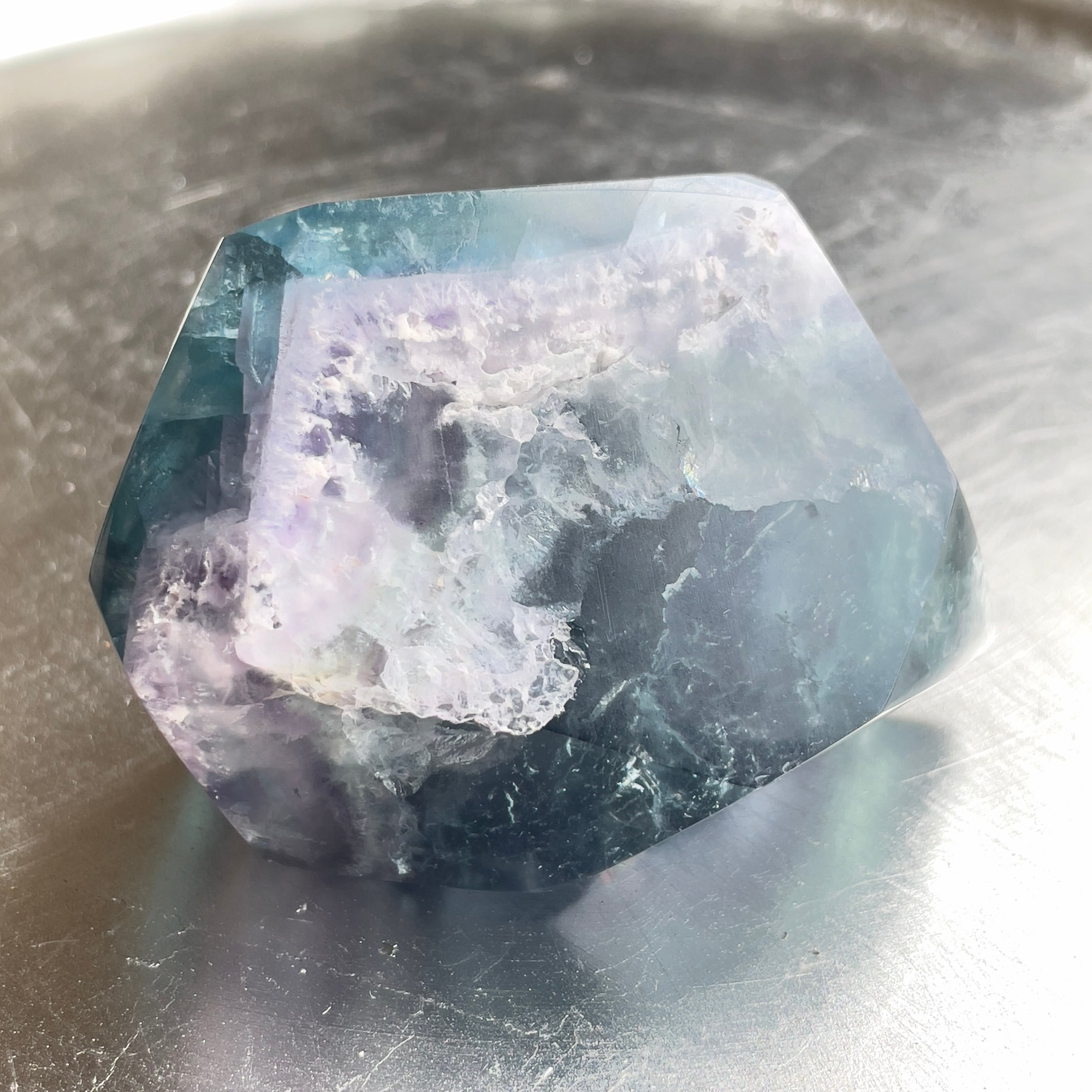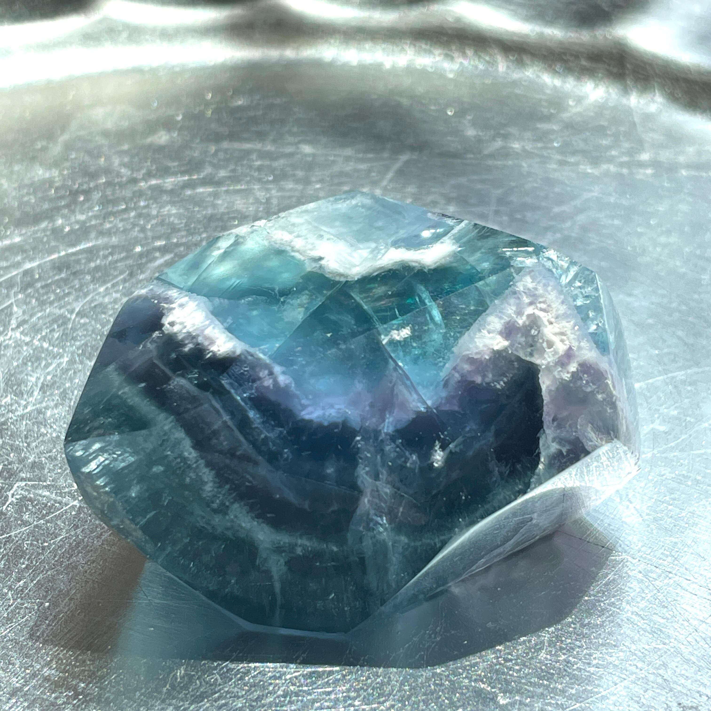フローライトはあたる光により見せてくれる姿がたくさんございます。たくさんの表情をお楽しみください✧̣̥̇(強い紫外線にあて続けることは退色の原因になりますのでオススメしません)