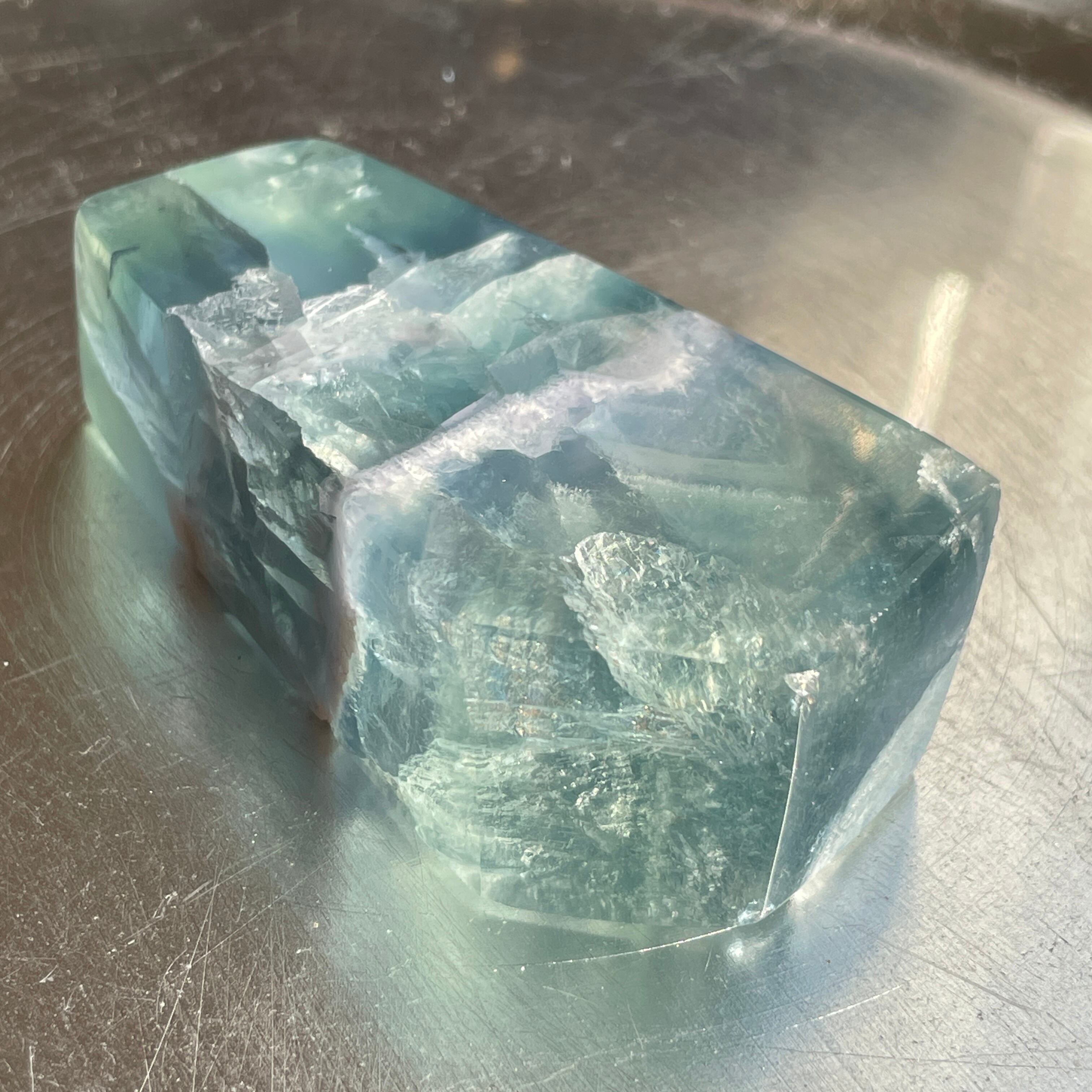 透明度の高い淡いアクアブルーとカリビアングリーンのグラデーションが美しいフローライトです✧̣̥̇